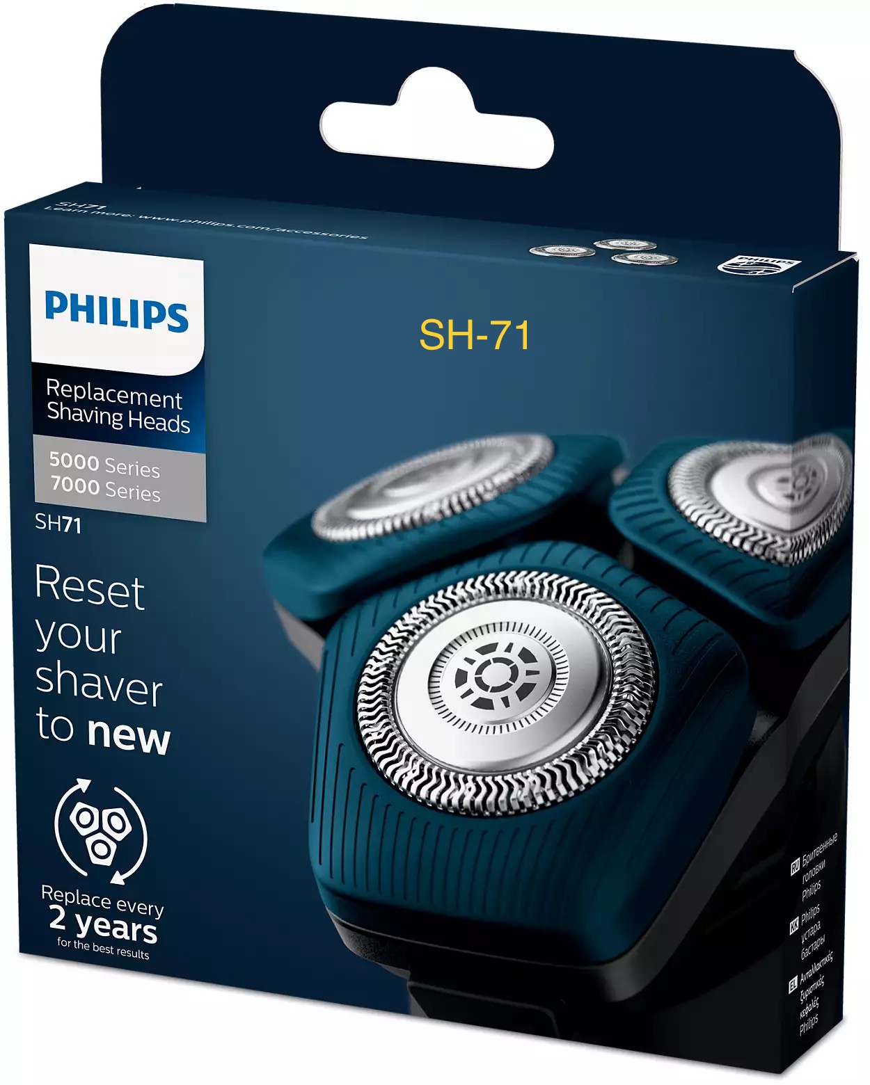 Los cabezales de repuesto SH71 son compatibles con todas las afeitadoras Shaver Series 7000 (S7xxx) y Series 5000 de forma angular (S5xxx).